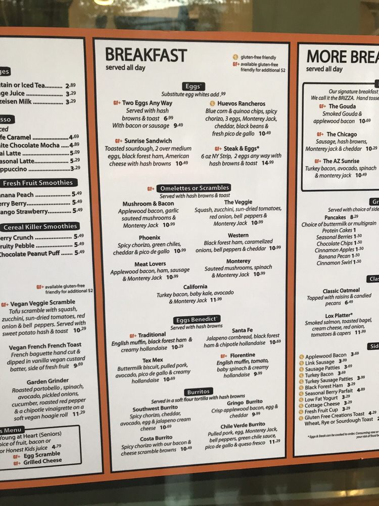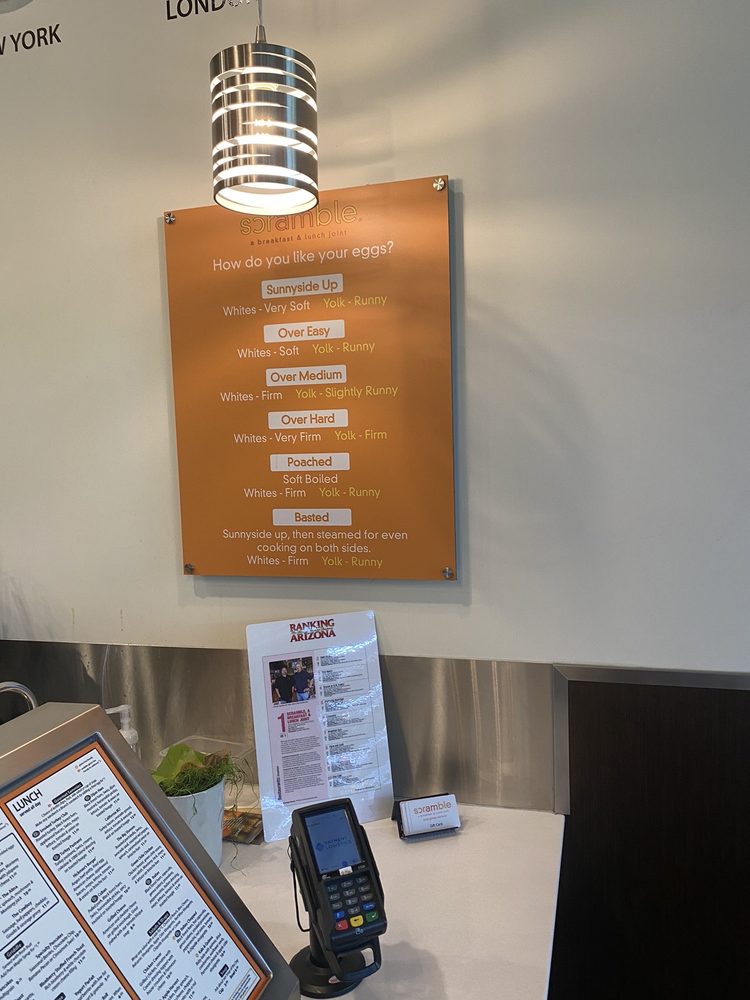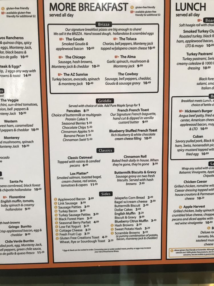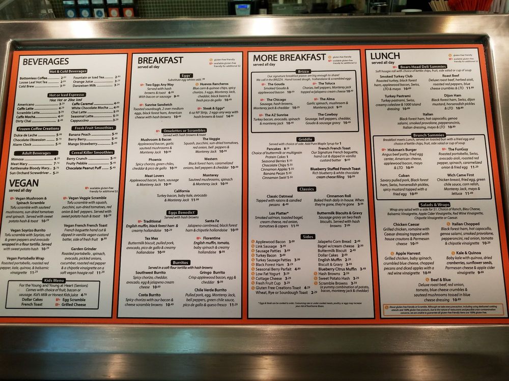 Highlights of the menu include their signature breakfast sandwiches, the exquisite AZ Sunrise breakfast pizza, and freshly squeezed orange juice that local patrons rave about. The commitment to quality is evident, as reviews praise the staff's friendliness and the food's freshness. With offerings like outdoor seating, a full bar, and the convenience of delivery and takeout, Scramble is not just a meal; it's an experience.
